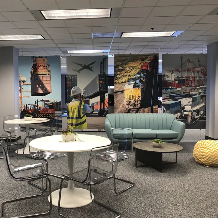 - PU foam tiles and hanging baffles absorb ambient noise in large office spaces.